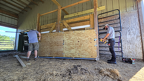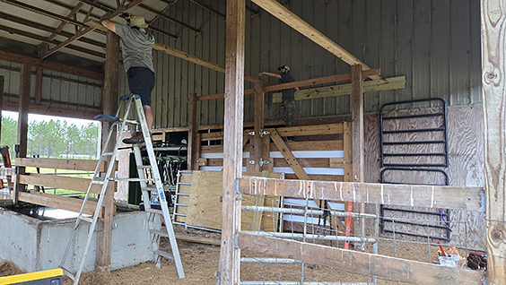Because the swing gate was very heavy, it pulled on the posts. Therefore, the posts needed to be braced by connecting them to other barn posts and the barn wall with huge lag bolts. Thus, the weight of the gate was distributed.